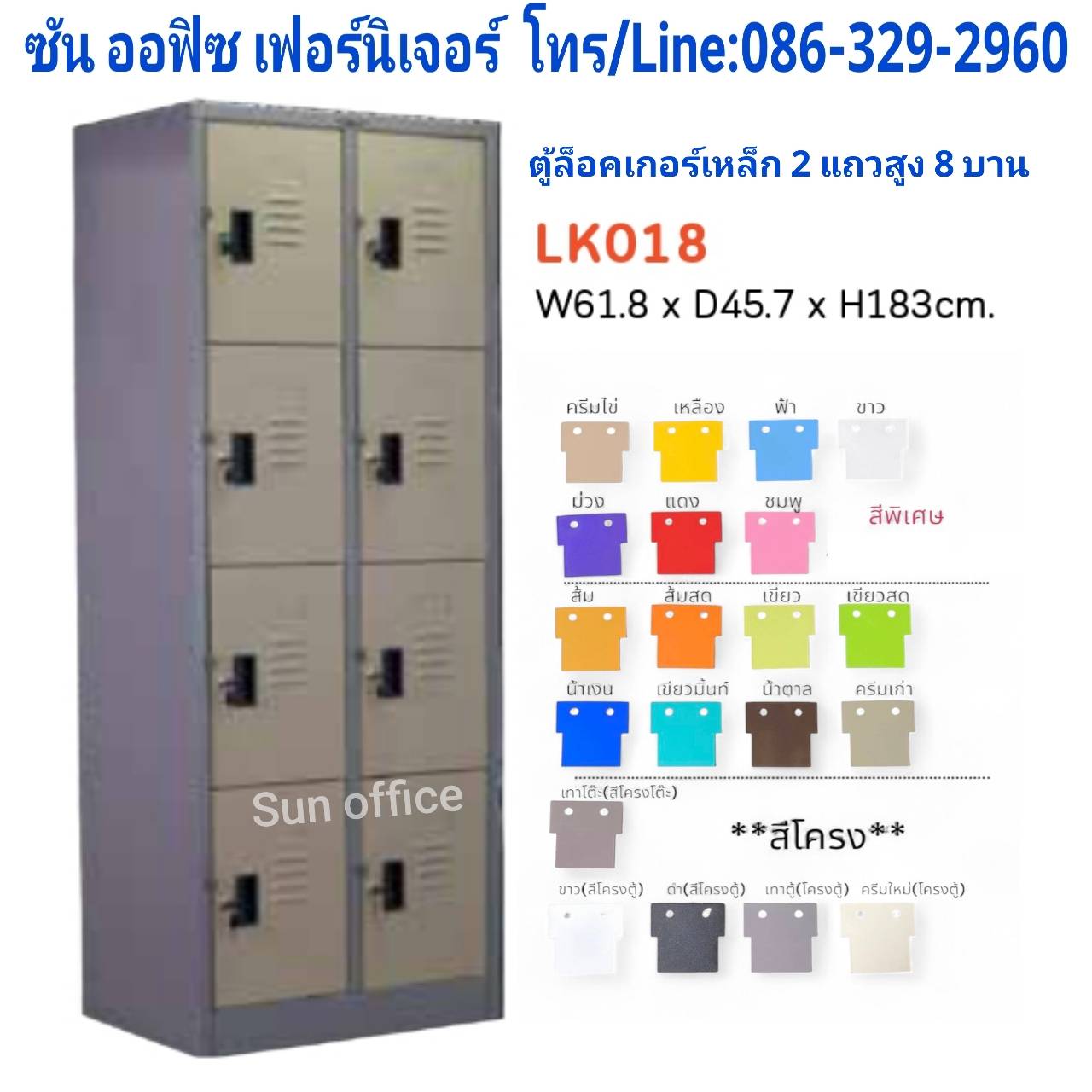 -ตู้ล็อคเกอร์เหล็ก เล็ก 2 แถวสูง 8 บาน