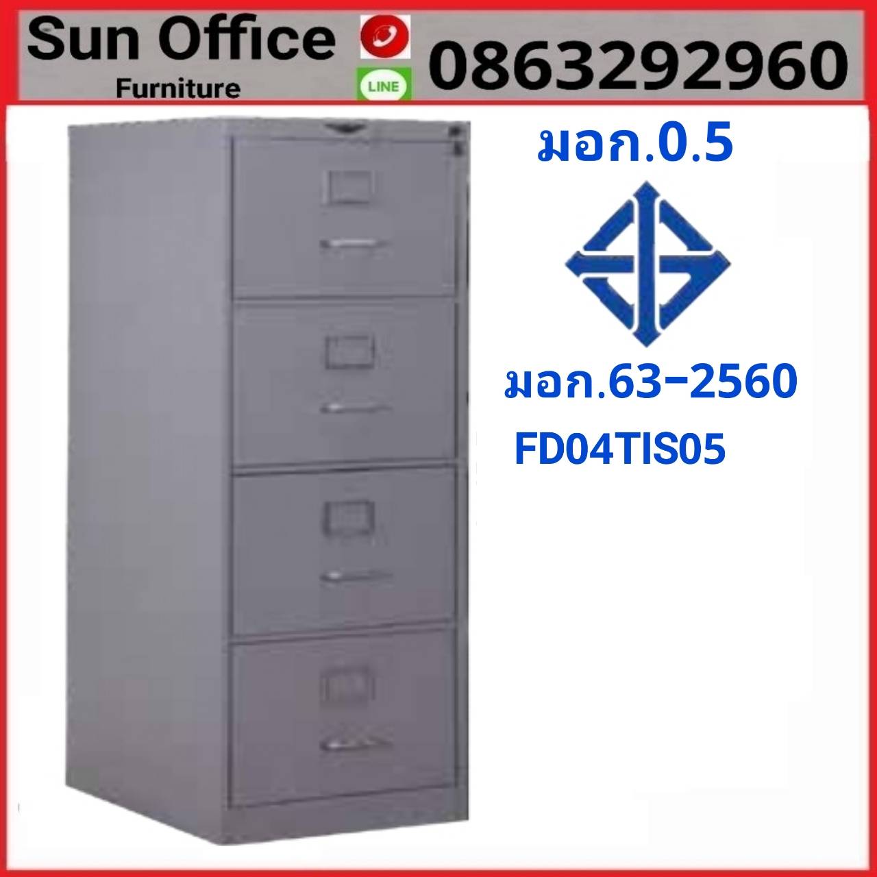 ตู้เหล็ก ตู้เอกสารเหล็ก 4 ลิ้นชัก มอก. รุ่น FD04TIS05 คุณภาพดี ราคาถูก