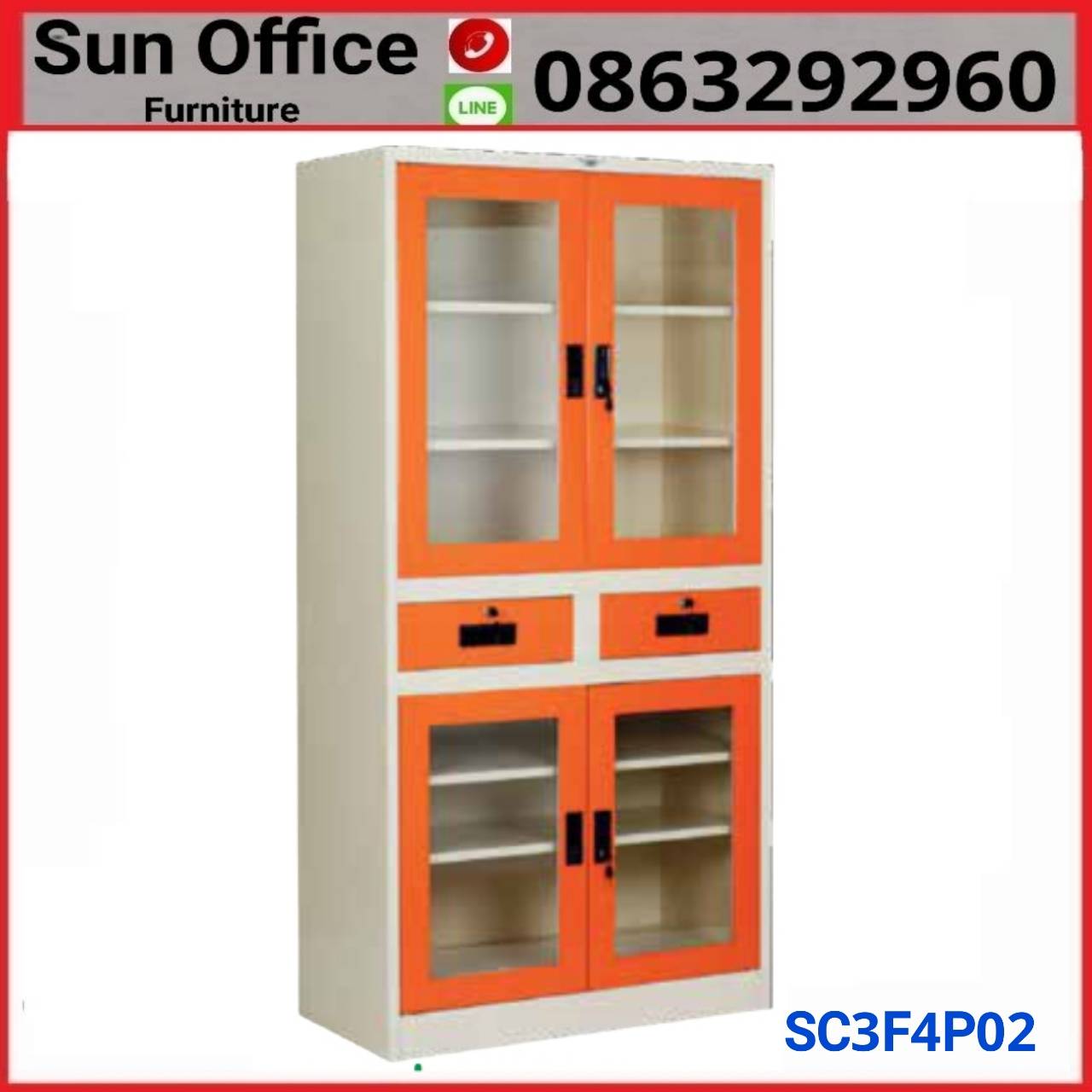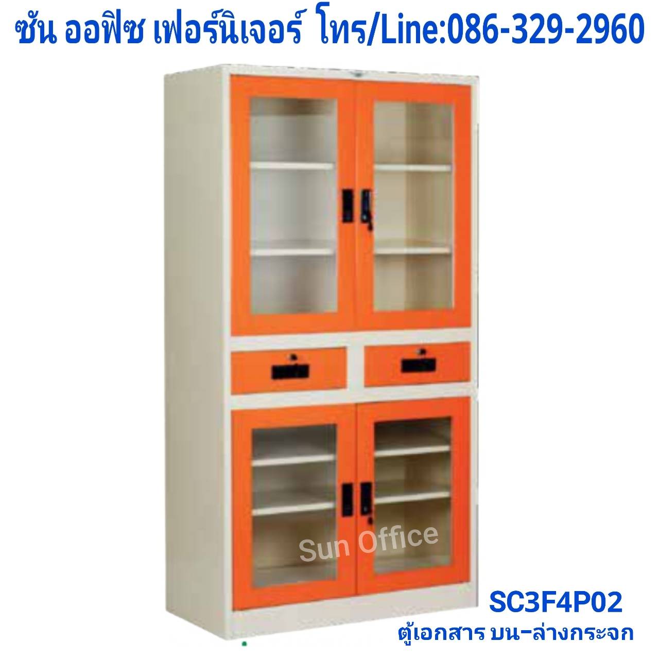 ตู้เอกสารเหล็ก บนกระจก ล่างกระจก มีลิ้นชัก รุ่นSCF4P02 คุณภาพดี ราคาถูก