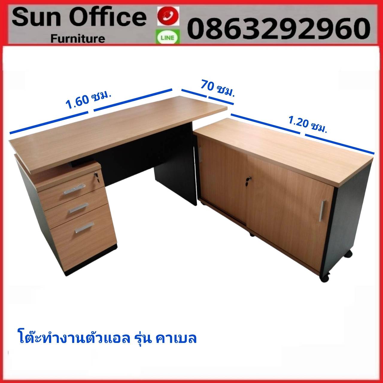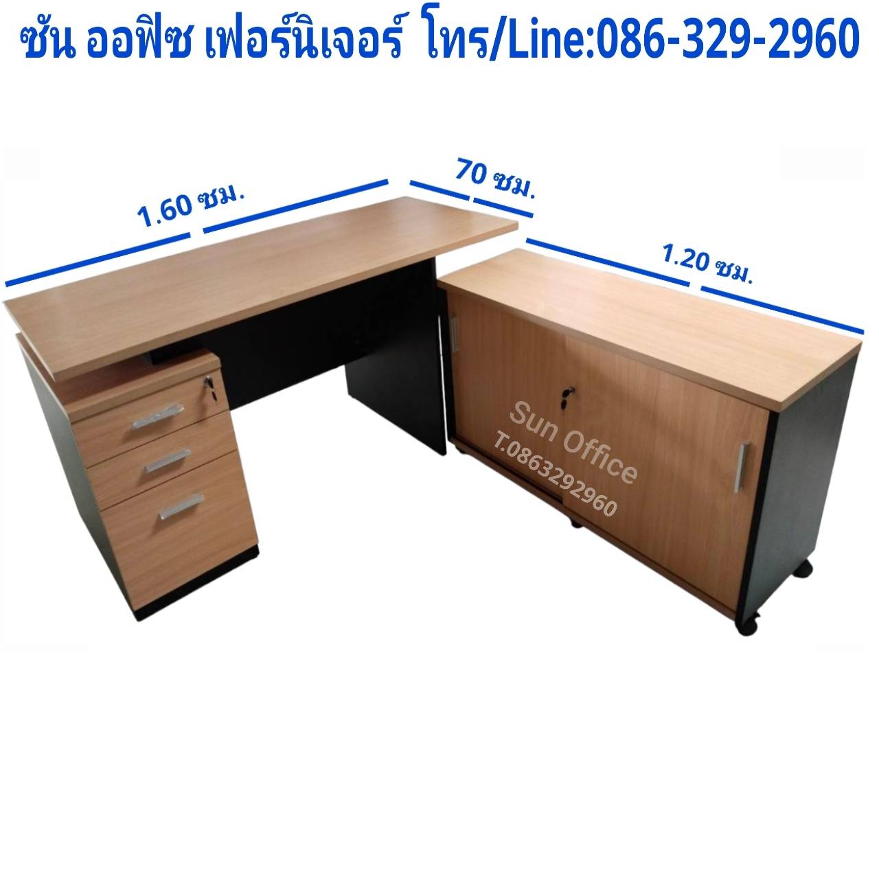 โต๊ะขนาด (กว้าง) 1.60 x (ลึก) 70 x (สูง) 75 ซม.